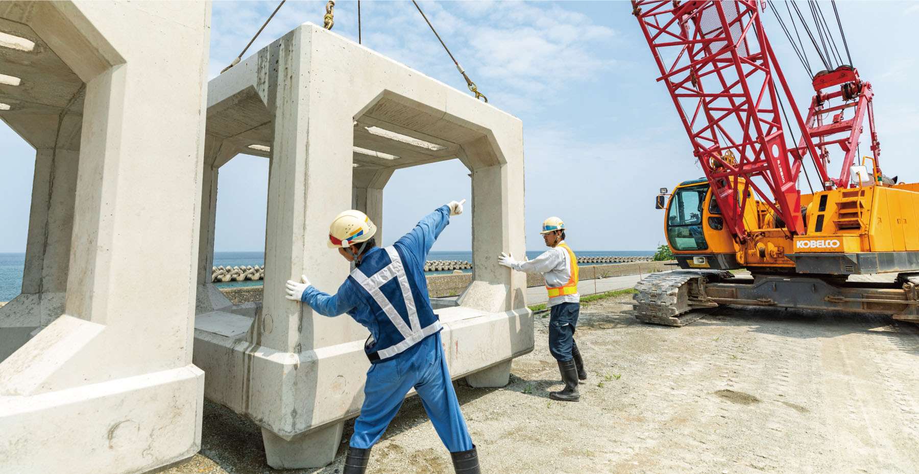「土木」「建築」「舗装」「船舶」「総務」の5部門が一丸となり共和土木の事業を支えています。